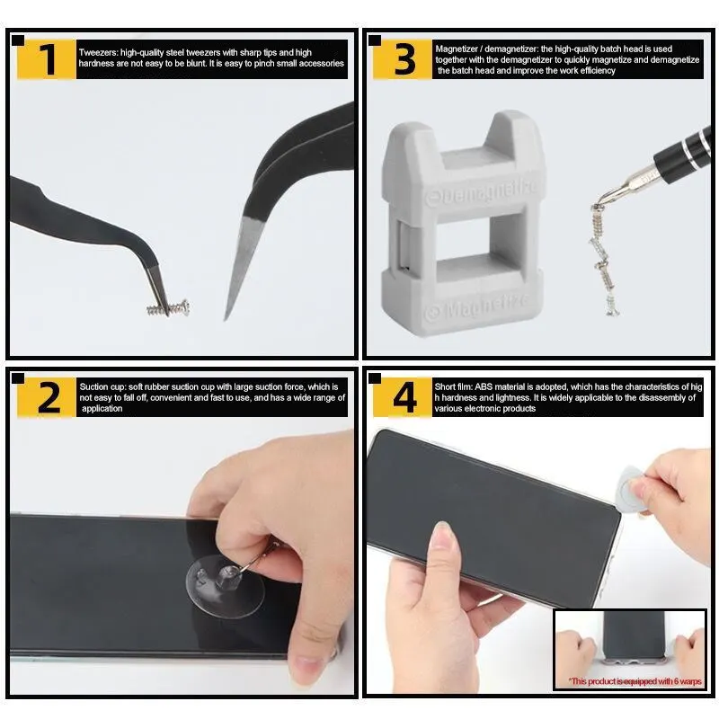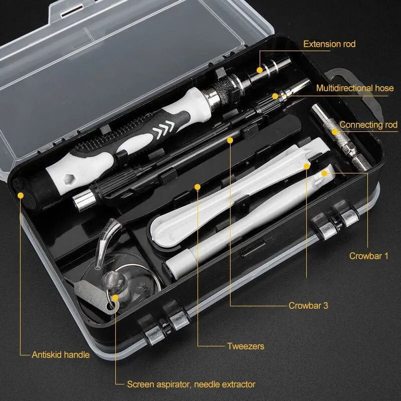 • 115 in 1 Screwdriver Set :This screwdriver set includes 115 different types of screws, making it a versatile tool for repairing various devices.